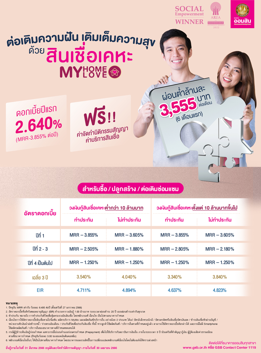 ต่อเติมความฝัน เติมเต็มความสุข ด้วยสินเชื่อเคหะ My Home My Love
