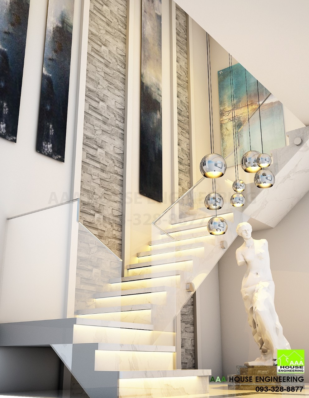 งานบันได โถงบันได และไฟประดับ
