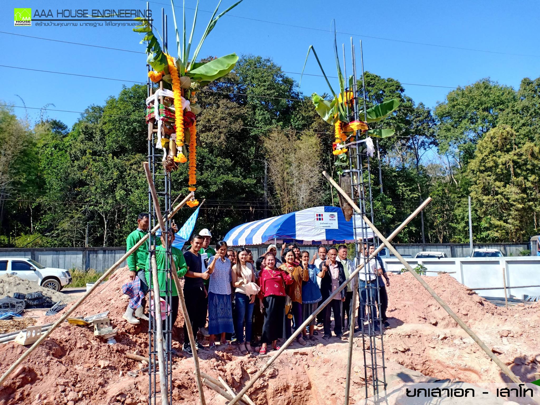 พิธียกเสาเอก เสาโท หน้างานบึงกาฬ